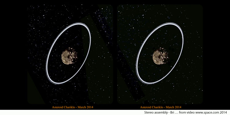 با وجود رصدهای بسیار دقیقی که تا به حال با تلسکوپهای مختلف انجام شده است، تاکنون حلقهای در اطراف سیارکی کشف نشده بود. اما در هنگام اختفای سیارک چاریکلو، که بین مدار سیاره زحل و سیاره نپتون در حال گردش به دور خورشید است، این حلقهها کشف شدند. در زمان این اختفا نیز چند ثانیه قبل از شروع و چند ثانیه بعد از پایان اختفا، تغییرات ناگهانی در روشنایی ظاهری ستاره مشاهده شد که نشاندهندهی وجود دو حلقه نازک به دور سیارک بود. این حلقهها تنها ۳ و ۷ کیلومتر پهنا دارند و به دور این سیارک که قطر آن ۲۵۰ کیلومتر است میگردند.